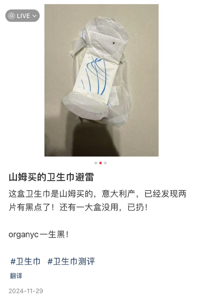 值得一提的是,在该社交平台上,《消费者报道》记者还发现了其他购买了同款有机棉卫生巾的消费者遇到了类似问题。