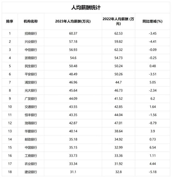 股份制商业银行薪酬情况:招商银行:薪酬标杆,人均60.37万元,高管薪酬最高(行长345.32万元),但2023年董监高薪酬同比腰斩。绩效追索力度最大,涉及金额4329万元。中信银行:员工平均薪酬59.54万元(A股银行第一),但人均营收同比下降11.05%。高管薪酬较高,但未进入前三。民生银行:董监高平均薪酬141.87万元(股份行第一),但同比下降17.53%。董事长高迎欣年薪373.52万元(全行业最高)。平安银行:人均薪酬同比下降8.3%,但高管薪酬仍居前列(如项有志301.82万元)。人均营收381.96万元,位列股份行第一。兴业银行、浙商银行、渤海银行:兴业人均57.18万元,但人均营收同比下降9.06%;浙商人均54.60万元,高管薪酬降幅超30%。渤海银行人均薪酬降幅最大(8.79%),且人均追索4.7万元。其他股份行:广发银行:人均薪酬涨幅6.20%,国有行中表现突出;浦发银行:董事长张为忠因任期短,年薪仅21.42万元,但员工平均薪酬未披露;恒丰银行:体量最小(1.2万员工),高管薪酬未公开。薪酬结构及岗位差异岗位层级分化。高层管理(如投行、风控)年薪可达百万,而一线员工(如柜员、客户经理)月薪仅5000-2万元,部分基层岗位甚至低至2000-3000元。股份制银行高薪岗位集中,国有行则因规模庞大导致平均薪酬摊薄。福利与隐性待遇。国有大行福利体系更完善(如住房补贴、职业稳定性),股份行则依赖绩效奖金。