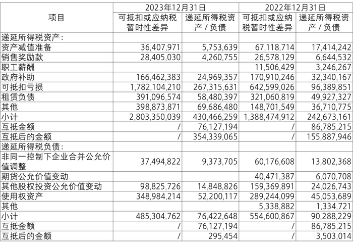 (四)与使用权资产和租赁负债相关的递延所得税年报披露示例