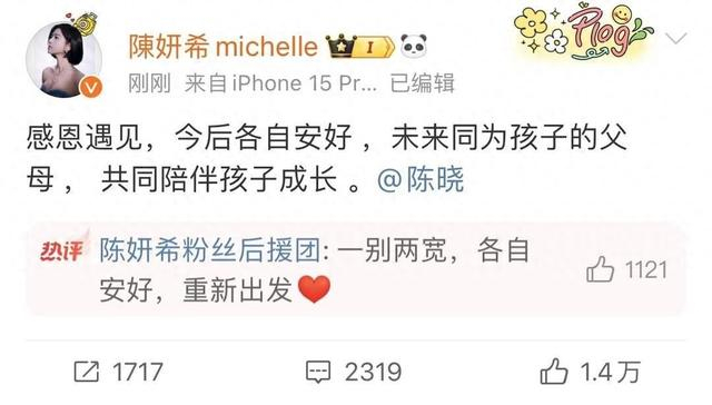 陈晓陈妍希官宣离婚:共同陪伴孩子成长