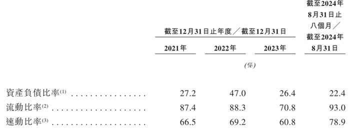 整体来看,各期末,正力新能的资产负债比率分别为27.2%、47.0%、26.4%、22.4%,多维持在较低水平。