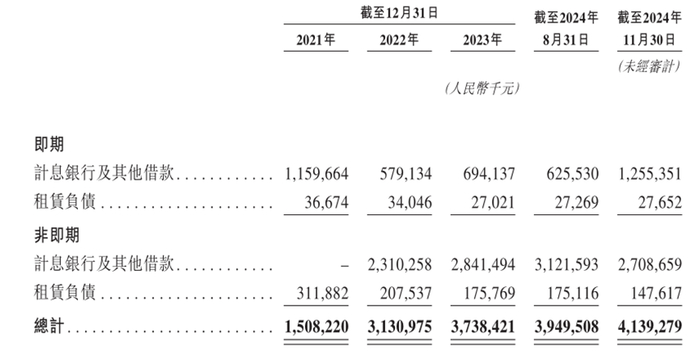 截至2021年末-2024年8月末,正力新能的计息银行及其他借款总额分别为11.6亿元、28.89亿元、35.36亿元及37.47亿元,逐年增长。