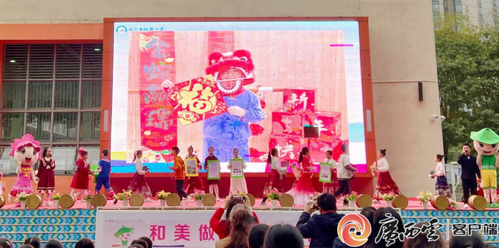 南宁市虹桥小学学生结合寒假实践作业带来生态节目合唱与走秀《和美家园》。