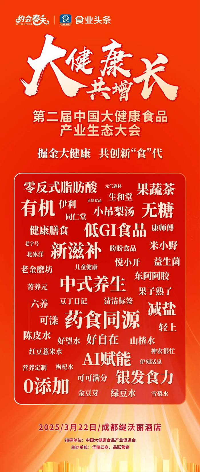 2025年3月21日~24日,由华糖云商联合量贩零食产业促进会、硬折扣超市产业促进会、中国大健康食品产业促进会、品跃营销等共同发起的“约会春天——2025全国春季糖酒会对接基地”将在成都举办,助力企业抢先机、抢市场、抢时间,在开年更快的布局市场。