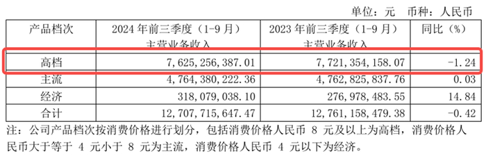 但从销售情况来看,其高档产品的增速却并不理想,从2021年的43.47%一降再降,哪怕在2023年,重庆啤酒主动把高档产品的价格从10元降到了8元以上,并把乐堡纳入了高档产品阵营,也没能挽回高档产品增速下滑的颓势,到了2024年甚至出现了负增长的情况。