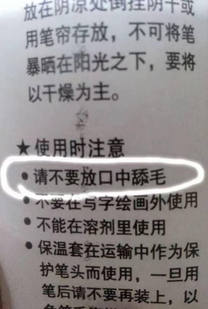 “每一句看似废话的规定,背后一定有你想象不到的故事。”“百岁老人把乐高告了,因为上面写着适合4-99岁。”“前半句是法规要求,后半句是怕人不买。”还有的网友也分享了自己遇到的奇葩“说明书”。“以前买过一个毛笔,后面说明写着不可放入口中舔毛。”“我买了一支笔,上面写说不适用于考试及签署任何文件。”