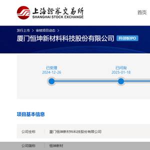 2024年12月26日科创板IPO获受理后,恒坤新材近期进入了问询阶段。