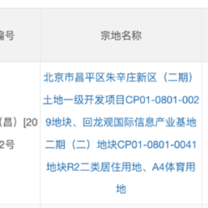 2月18日,北京市昌平区朱辛庄二期0029地块、回龙观国际信息产业基地二期0041地块完成出让。