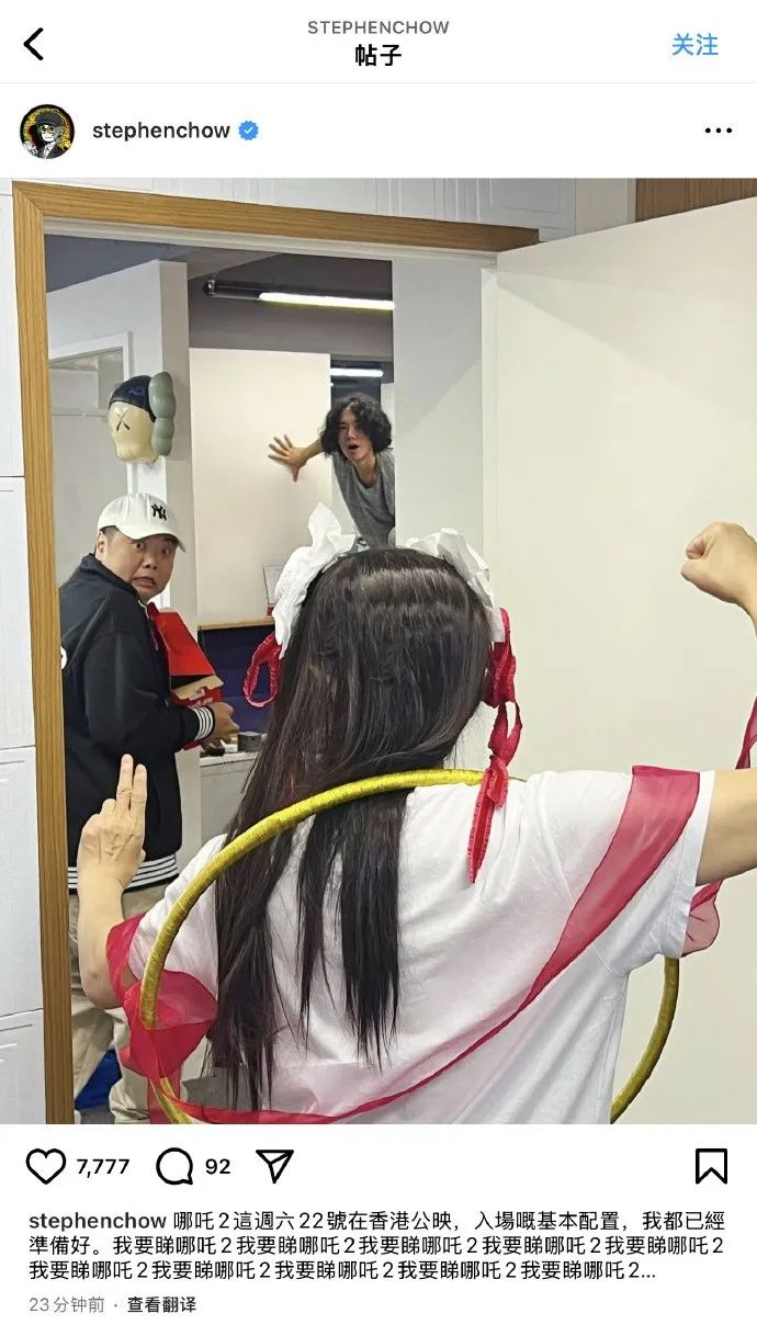 周星驰连发10遍“我要看《哪吒2》”,cos哪吒造型