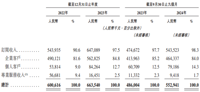 报告期内,群核科技的个人客户数量分别为31.11万名、39.06万名、41.39万名;企业客户数量分别为3.31万名、4.11名、4.55万名。截至2024年9月30日,群核科技的大客户净收益留存率为114.1%,个人客户的净收益留存率为96%。目前,该公司超过九成的收入来源于订阅收入,其中企业客户的订阅付费贡献超80%收入。