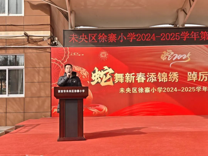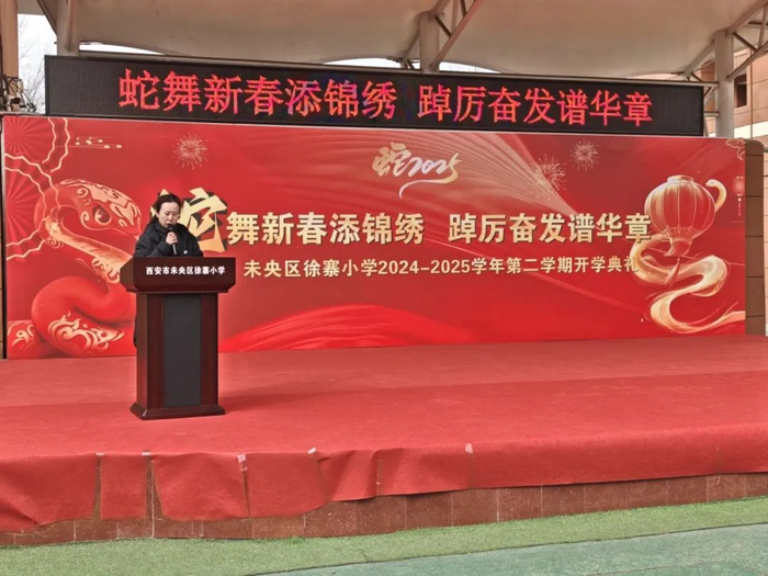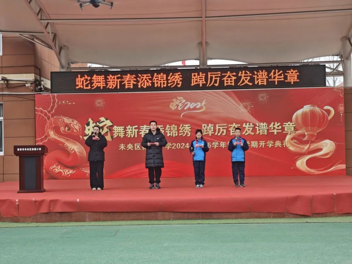 阳光讯(记者 梁永飞 通讯员 罗梦怡)瑞龙辞岁,金蛇迎新。近日,西安市未央区徐寨小学全体师生齐聚操场,举行了一场别开生面的开学典礼,主题为“蛇舞新春添锦绣 踔厉奋发谱华章”。这场开学典礼不仅为新学期拉开了精彩序幕,更点燃了师生们的奋斗热情!
