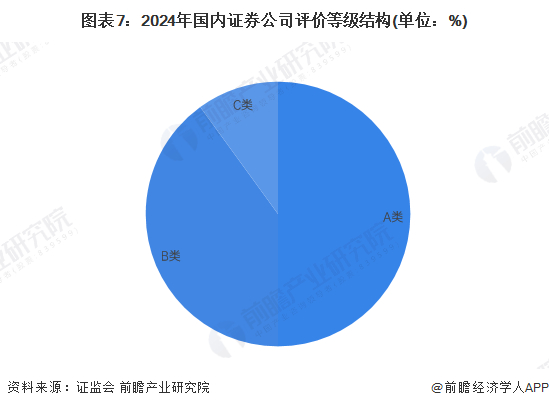 根据证监会向证券公司公布的2024年分类评价结果,其中A、B、C类公司数量占比分别为50%、40%、10%,AA级别公司保持在14家左右。