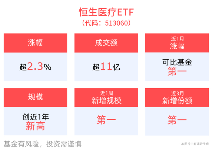 份额方面,恒生医疗ETF近3月份额增长5.25亿份,实现显著增长,新增份额位居可比基金1/3。