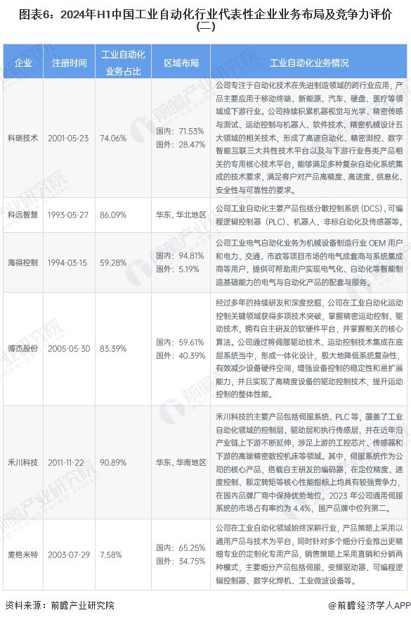 4、 中国工业自动化行业企业业务布局及竞争力评价