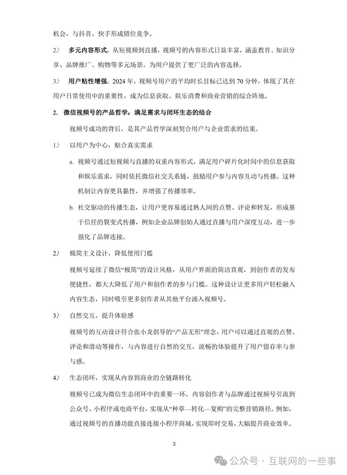 2024年,视频号用户平均时长已达70分钟,成为品牌与用户深度连接的重要桥梁。未来,视频号将以更精准的算法推荐、更丰富的内容形式及更高效的商业闭环,推动创作者、品牌与用户共生共荣。白皮书还强调,视频号不仅承载着内容创作的无限可能,更将成为品牌数字化营销的新质生产力,开启内容生态的新纪元。