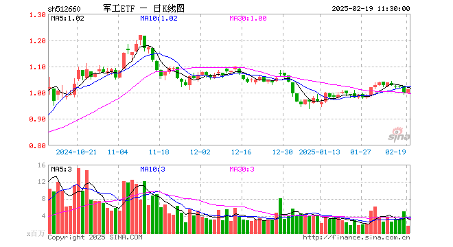 军工ETF(512660)涨1.30%,半日成交额1.65亿元