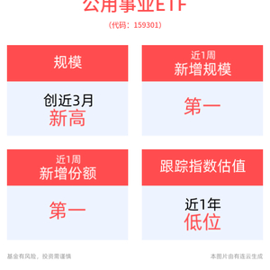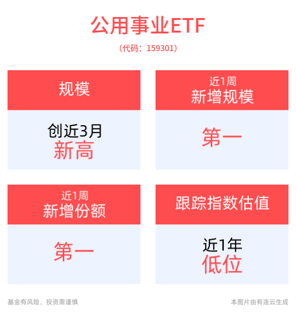 从估值层面来看,公用事业ETF跟踪的中证全指公用事业指数最新市盈率(PE-TTM)仅16.02倍,处于近1年12.6%的分位,即估值低于近1年87.4%以上的时间,处于历史低位。