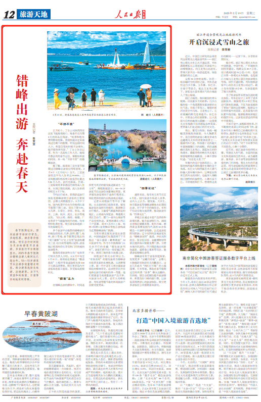 多地正在通过丰富产品供给和政策优惠,提升旅游吸引力。湖南吉首推出矮寨奇观、乾州古城、湘西黄金茶博览园为代表的10余条精品一日游研学线路,让近途游客即玩即游;辽宁沈阳向各地游客发出“错峰游沈阳”邀请,并在沈阳故宫、张学良旧居、金融博物馆等景区提供每日限量免费门票,方便本地市民游玩;四川理县推出初春泡温泉、遥看春山雾凇等玩法,邀请游客错峰出游等。