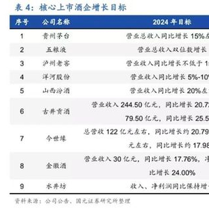 此外,部分公司增长节奏略慢于年初目标。从上市公司前三季度业绩与年初目标看,目前部分公司前三季度节奏略慢于年初增长目标,主要由于 Q3 白酒公司主动增长降速,消化渠道库存。