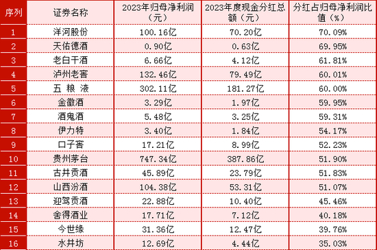 16家参与2023年度分红的白酒企业