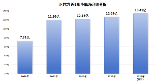 根据水井坊1月24日披露的经营数据显示,公司预计实现归母净利润13.41亿元,较上一年度增长约6%,这一增速相较于2023年的4.36%有所提升。同时,营业收入预计达到52.17亿元,同比增长约5%,虽略低于2023年的6%增速,但仍保持了正向增长趋势。