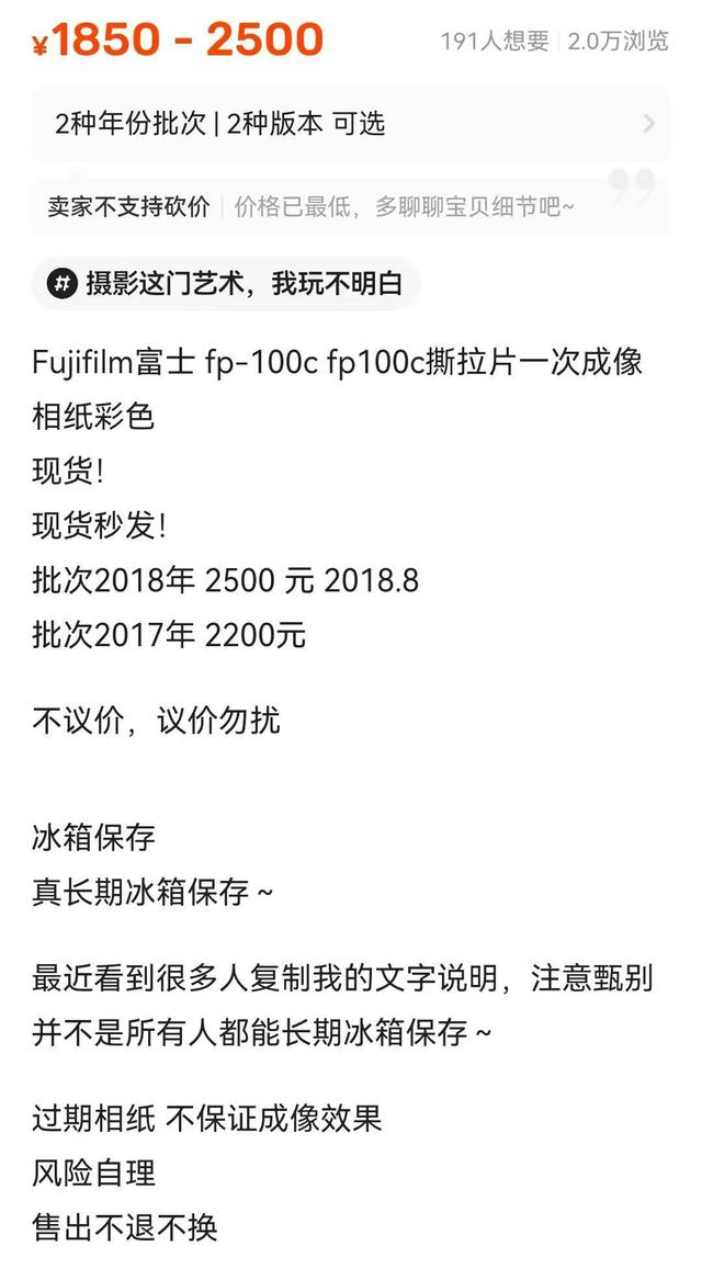 复古拍照新潮流,不保证成像质量的撕拉片单盒价格飙升至近2000元