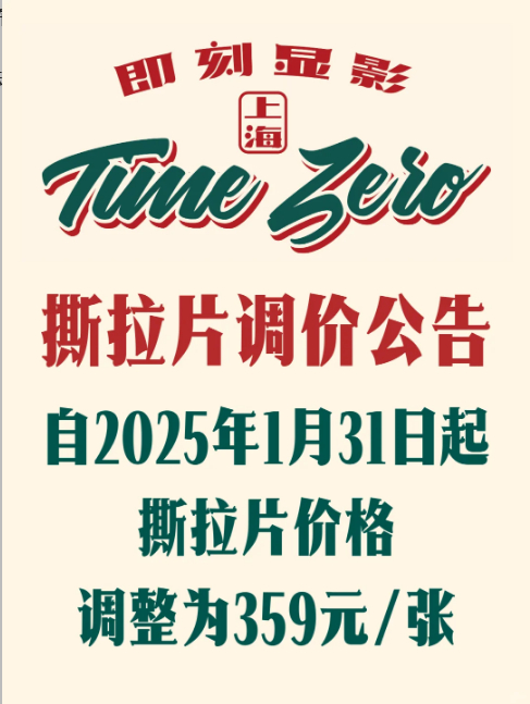其价格暴增与社交平台上忽然掀起的复古拍摄风有关,2024年FP-100C单张价格就破百元了,一盒要一千元上下,到了2025年以小红书为主的年轻人社交平台出现了“体验拍一张就少一张撕拉片”的趋势,撕拉片在二手交易平台的价格飙升,有卖家挂出了两千多元一盒的价格现货出售,且不接受买家讲价,相当于每张撕拉片价格200元左右,到了照相馆单张价格要比胶片卖家的更贵了,上海某照相馆于今年1月底发布了撕拉片价格调价公告,一张撕拉片定价359元,撕拉片是一次性耗材,属实是一次拍摄几秒体验几百块钱瞬间消失。