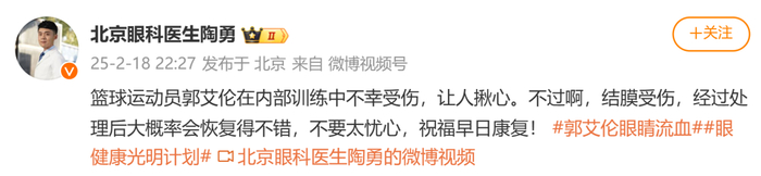 郭艾伦眼部受伤,经纪人最新回应!陶勇医生谈伤情