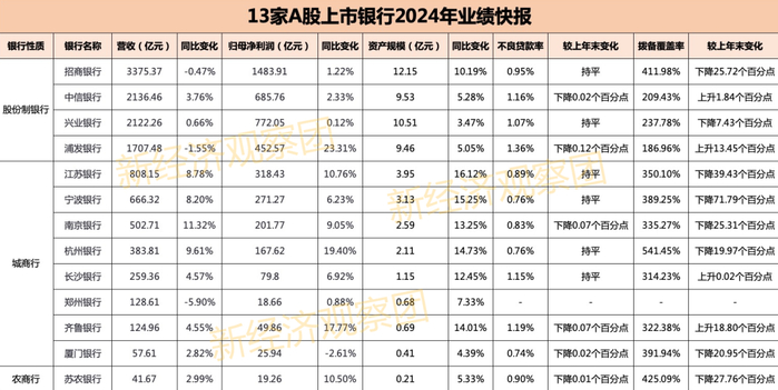 13家上市银行业绩快报:谁营收增长最快?谁不良率最高?