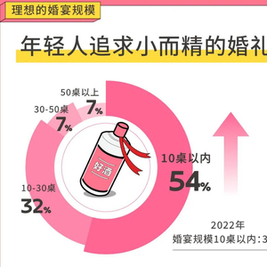 “年轻人结婚轻量化,预算投入体现更加理性。据调研估算,2024年婚礼花费普遍下降10%~20%,的确会让婚宴白酒市场的存量竞争变得更加激烈。”张笑璐坦言。