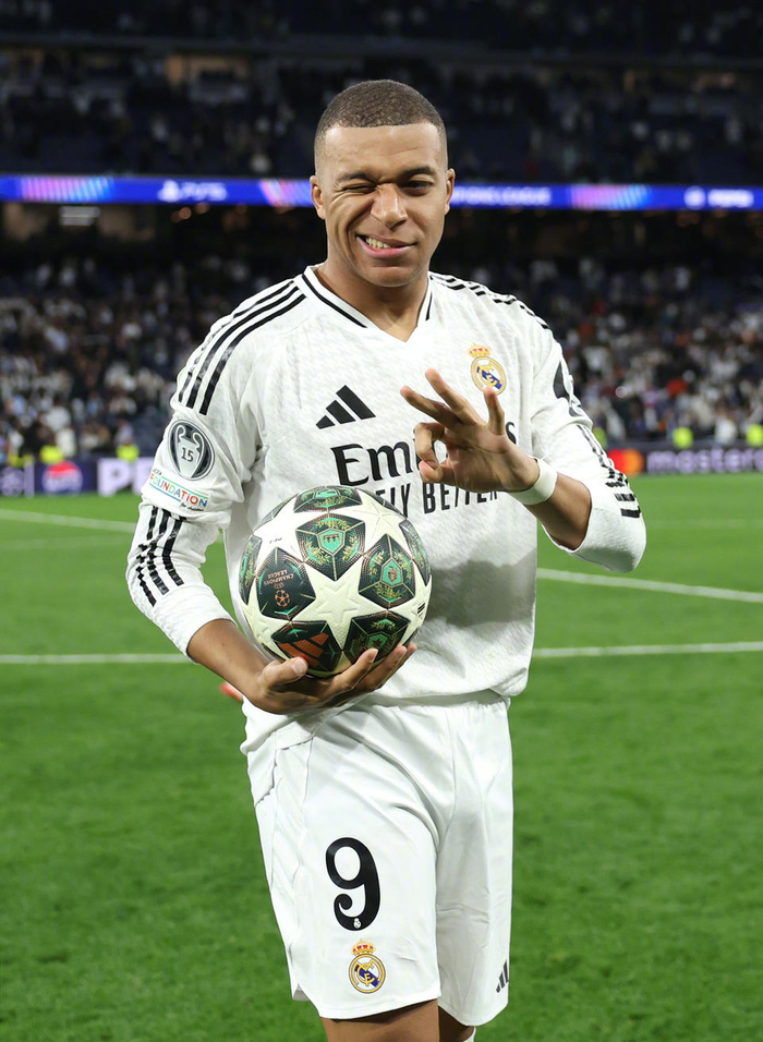 皇马3-0领先,姆巴佩完成了帽子戏法,他本赛季已经打进了9个欧冠进球。