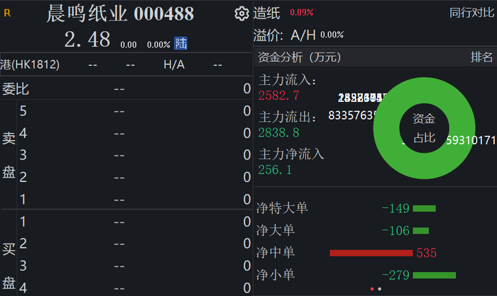 截至2月19日收盘,晨鸣纸业下跌0.40%,最新价为2.48元/股,总市值达72.95亿元。数据显示,截至2024年三季度末,公司股东总户数为133939户。