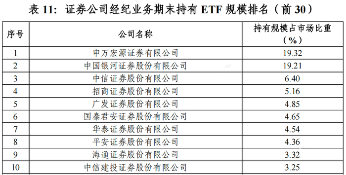 ETF持有规模:申万宏源、银河证券分列冠亚,中小券商差异化突围