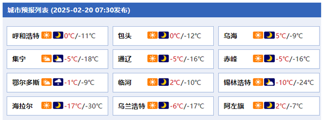 据监测显示,今天,阿拉善盟东北部、巴彦淖尔市西北部、鄂尔多斯市东北部、包头市北部、呼和浩特市南部、乌兰察布市东北部、锡林郭勒盟西部和东北部、赤峰市东北部、通辽市西北部、兴安盟西北部、呼伦贝尔市西南部有分散性小雪,其余地区晴间多云。明天,锡林郭勒盟东北部、赤峰市东北部、通辽市西北部、兴安盟西北部、呼伦贝尔市西南部有分散性小雪,其余地区晴间多云。后天,锡林郭勒盟东北部、赤峰市西部和北部、兴安盟西北部、呼伦贝尔市西南部有分散性小雪,其余地区晴间多云。未来三天降雪较少,天气较为干燥,公众需注意用火用电安全,具体未来三天天气预报如下:
