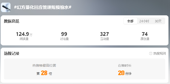 2月20日,一则 “幻方量化管理规模缩水至100多亿元” 的消息如深水炸弹,在金融投资圈掀起轩然大波,#幻方量化回应管理规模缩水#话题词更是登上热搜,引发市场各方高度关注。作为量化投资领域的明星机构,幻方量化的一举一动都备受瞩目,此次规模骤降传言更是吊足了投资者的胃口。
