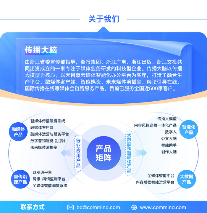 未来,“天目蓝云”将持续迭代升级,传播大脑也将深耕媒体科技领域,不断推进新兴技术的应用创新,通过数字化手段提升媒体全流程以及文化产品服务的数字化水平。