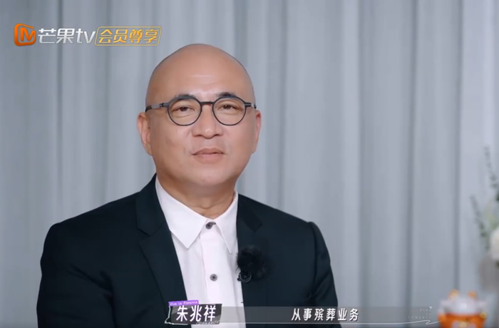朱兆祥也在节目中自我介绍到:“大家好,我是朱兆祥。今年59岁,从事殡葬业务。”