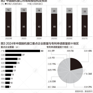 根据报告,当前,通过药监局审批上市的脑机接口产品大多为非植入式脑机接口,例如脑电图机、脑电监测传感器、近红外脑功能成像装置等,市场规模占比较大。2024年,非植入式脑机接口占整体市场规模的比重为82%,市场规模达26.3亿元。未来,随着技术创新的进步,植入式脑机接口的应用逐渐成熟,治疗潜力不断被发掘,预计到2027年植入式脑机接口的市场规模占比达到25%。