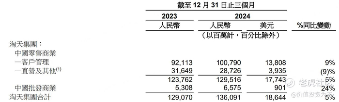 拖累淘天集团的主要是直营业务下滑了9%,虽然是负增长,但不是坏事,主要是阿里减少了直营业务。