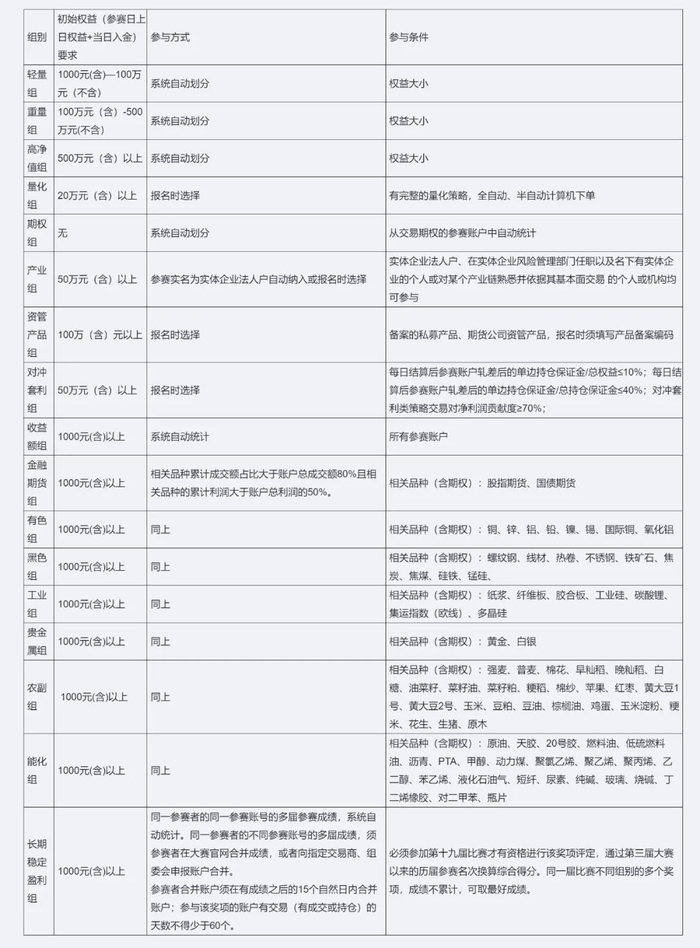 第十九届全国期货(期权)实盘交易大赛 比赛规则