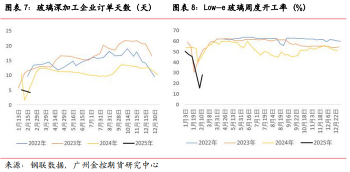 后期随着下游玻璃深加工企业逐步复工,原片玻璃的刚需低位回升,玻璃需求端将环比好转。从全年玻璃需求来看,地产现实情况对玻璃年度总需求形成压制,在地产竣工端未见明显起色以及现实工程订单较弱的情况下,玻璃企业普遍对2025年的需求不抱有太大期望。然而,短期投机需求或能对玻璃价格形成阶段性提振,当下玻璃期价已反映需求季节性弱势,后期或随着需求恢复而低位回升。