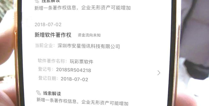 同时,她从相关平台查到,这家公司在2018年的时候,新增了几个彩票软件的著作权。