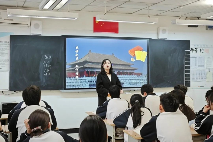 孙雨辰老师的历史课以清朝前中期的鼎盛与危机为脉络,培养学生的文化自信与民族自豪感;姜文利老师的数学课程在讲解直线与平面垂直时,巧妙借助低空无人机的应用情景导入,激发学生的创新思维;何颖老师的英语教学以 “讲好中国故事”为切入点,借助徐霞客的人生经历和杰出贡献,让学生感知其人格的伟大魅力,激发学生树立远大的志向并勇敢追梦;李惠玉老师的美术课堂介绍中国书法的演变,通过多种形式引导学生感受和认识中国书法的风韵神采,加深对中华传统文化的理解与认同,弘扬中华优秀传统文化;王桂云老师的思政课《立足时代 志存高远》,充分利用视频创设教学情境,激发学生兴趣,让学生感受一个时代有一个时代的追梦人。