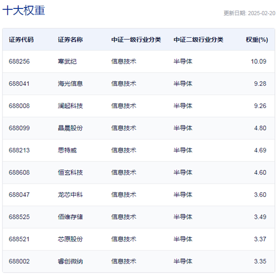 上证科创板芯片指数是中证指数有限公司于2022年6月13日发布。指数基日为2019年12月31日,指数基点为1000点。上证科创板芯片指数从科创板上市公司中选取业务涉及半导体材料和设备、芯片设计、芯片制造、芯片封装和测试相关的证券作为指数样本,以反映科创板代表性芯片产业上市公司证券的整体表现。从成分股集中度来看,指数的权重集中于前十大成分股,占比合计超60%,重仓个股普遍为科创板芯片产业龙头个股;从行业分布上来看,指数成分股大多属于“半导体”二级行业,其中“数字芯片设计”与“半导体设备”占比最多,与数字经济、芯片产业高度相关。