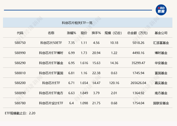 点评:科创芯片设计ETF(588780)半日涨幅也达到6.4%,该ETF规模为0.68亿份,半日成交金额为1754万元,其追踪的是上证科创板芯片设计主题指数。