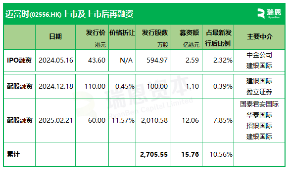 迈富时此次配股融资金额大大超过其IPO及前次募资,该公司于2024年5月16日在香港主板IPO上市,当时募资2.59亿港元。