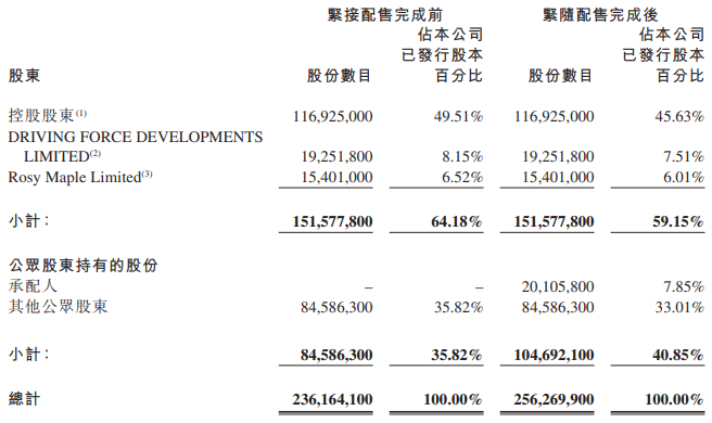 配股价较上一日收市价67.85港元折让约11.59%,配售股份相当于经扩大化后已发行股份数目约7.85%。