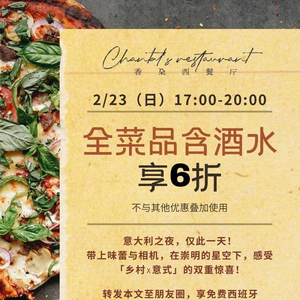 香朵西餐厅优惠来袭,仅此一天