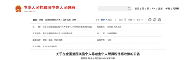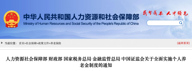 2024年12月,财政部、国家税务总局等五部门联合发布《关于全面实施个人养老金制度的通知》。