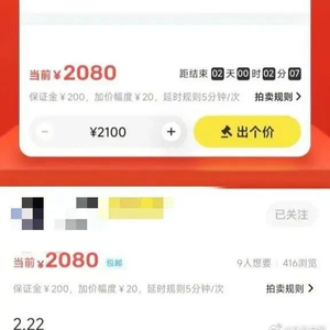 为此,不少人开始代卖,通过平台拍卖功能转售电影票。缴纳200元保证金,起拍价200元,以20元为单位加价。据悉,中国电影博物馆IMAX,周末中间位置的2张电影票,竟被拍至2080元,且距离截拍时间仍有2天